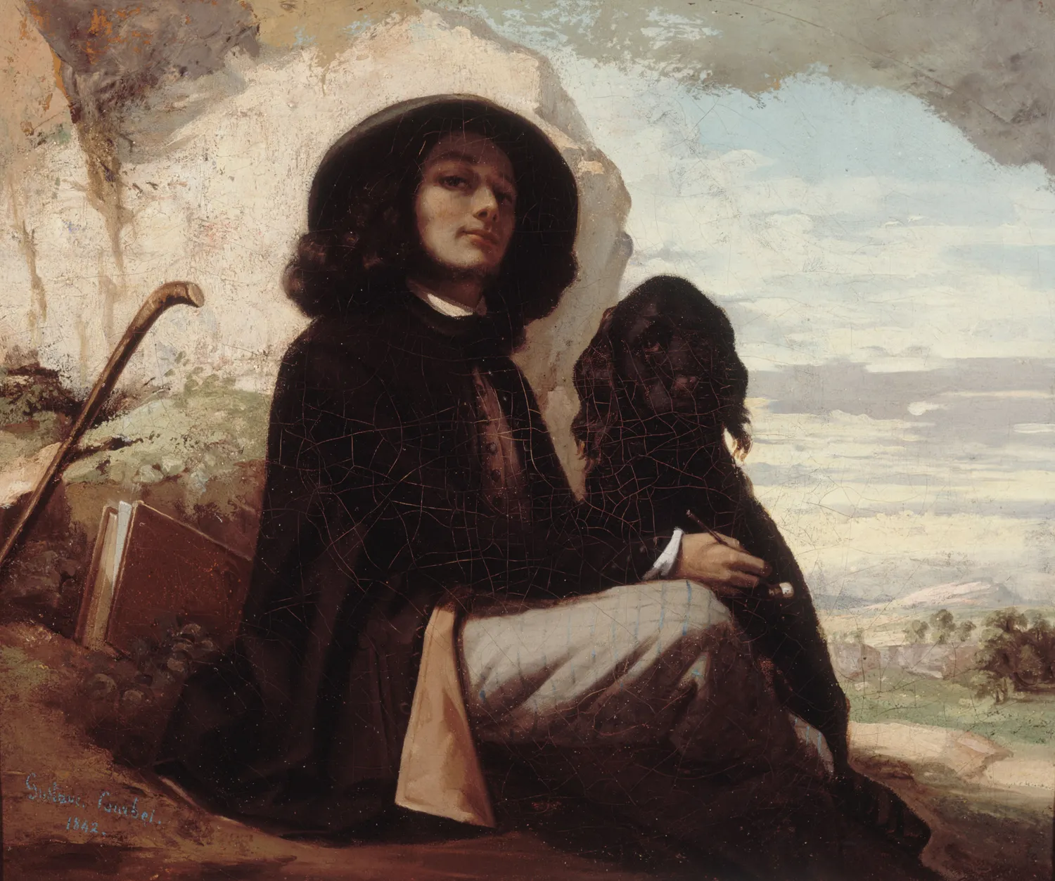 Gustave Courbet, Autoportrait dit Courbet au chien noir, entre 1842 et 1844. Huile sur toile, 46,5 × 55,5 cm. Paris, Petit Palais, musée des Beaux-Arts de la Ville de Paris. CCØ Paris Musées / Petit Palais